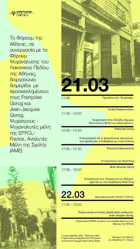 σε συνεργασία με το Φόρουμ Ψυχανάλυσης του Λακανικού Πεδίου της Αθήνας
