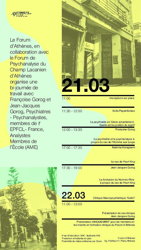 en collaboration avec le Forum de Psychanalyse du Champ Lacanien d’Athènes